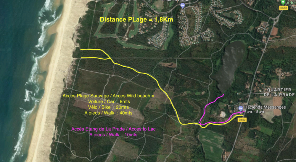 La propriété fait 4000m2, accès direct à la plage sauvage de la Gravière (2km) ainsi qu’a l’Etang de la Prade, (1.2km)